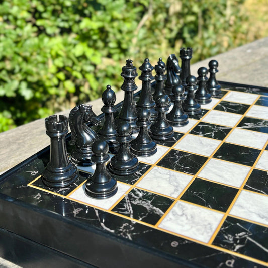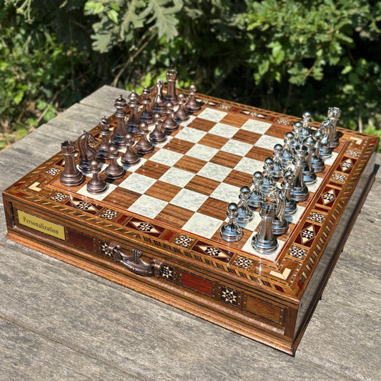 Luxury Wooden Chess Set – Handmade with Metal Pieces & Drawer – Custom Gift for Anniversary, Birthday, Him or Dad