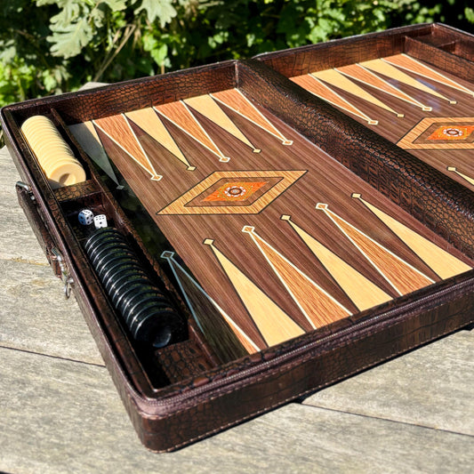 Personalized Leather Backgammon Set – Handmade Wooden Game Board Gift for Him, Anniversary or Birthday Gift for Husband or Boyfriend